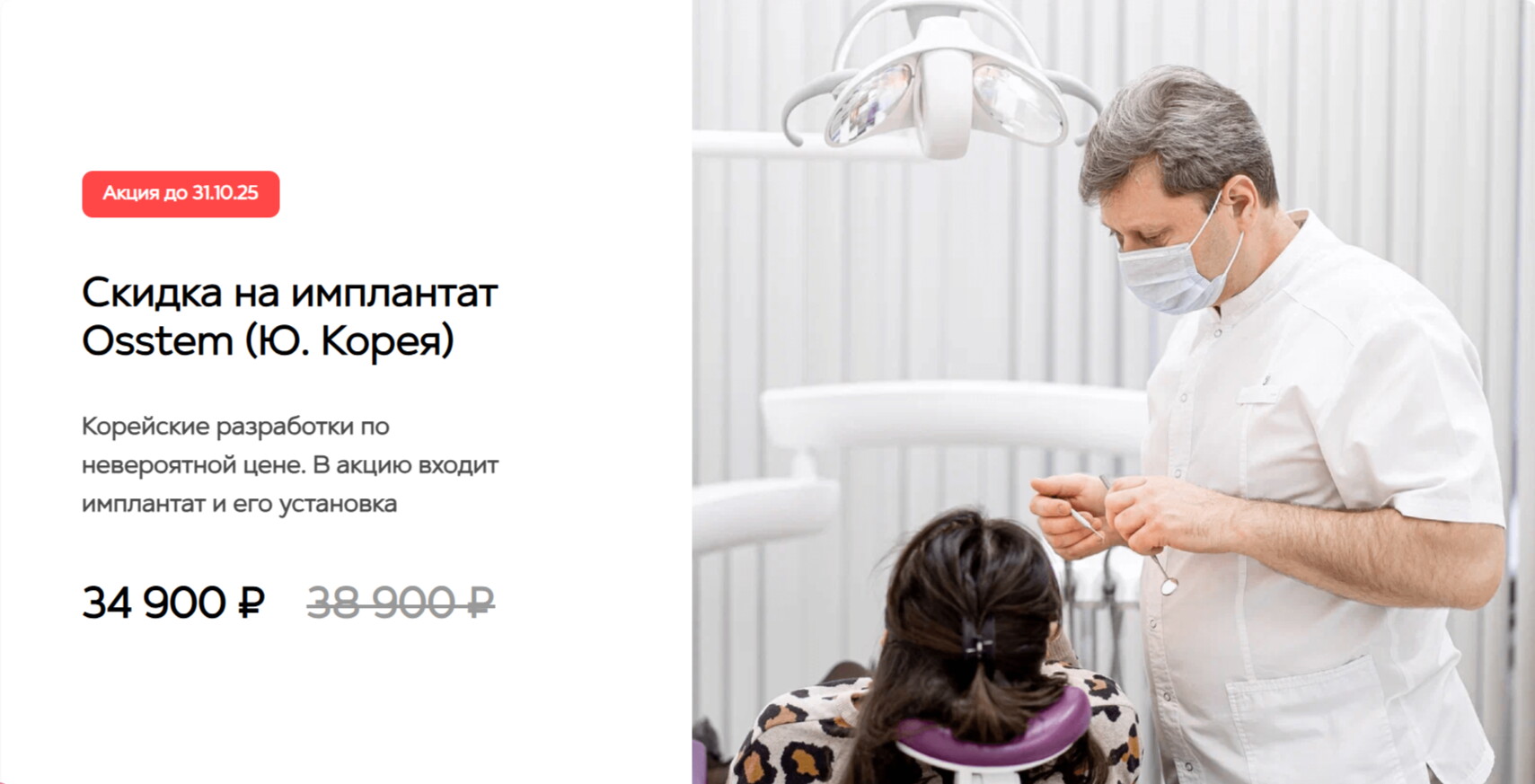У меня отсутствует зуб, и на приеме мы сделали слепок, вставили временный зуб и меня подробно проконсультировали по дальнейшему лечению. Объяснили, как будет ставиться имплант и какие есть варианты протезирования. Также стоматолог все достаточно популярно объяснил и выполнил все быстро.